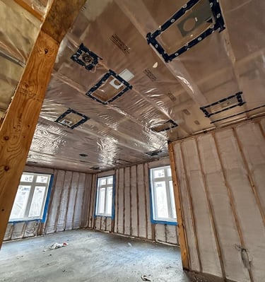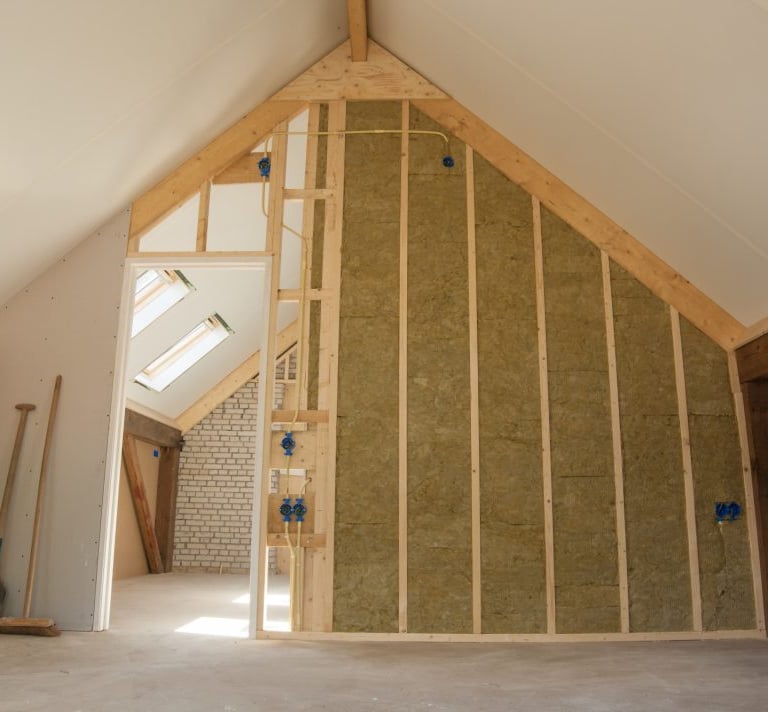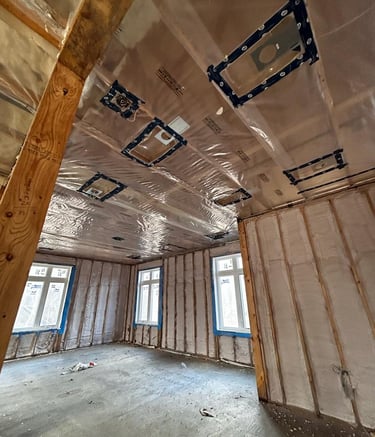 Explore our renovation projects showcasing insulation, paint, drywall, and blinds.